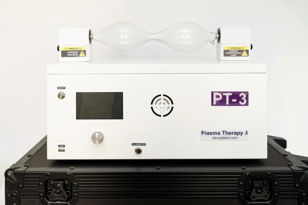 PT-3 łączy funkcje klasycznego generatora Rife’a, nowoczesnej lampy plazmowej oraz modułu biofeedbacku.